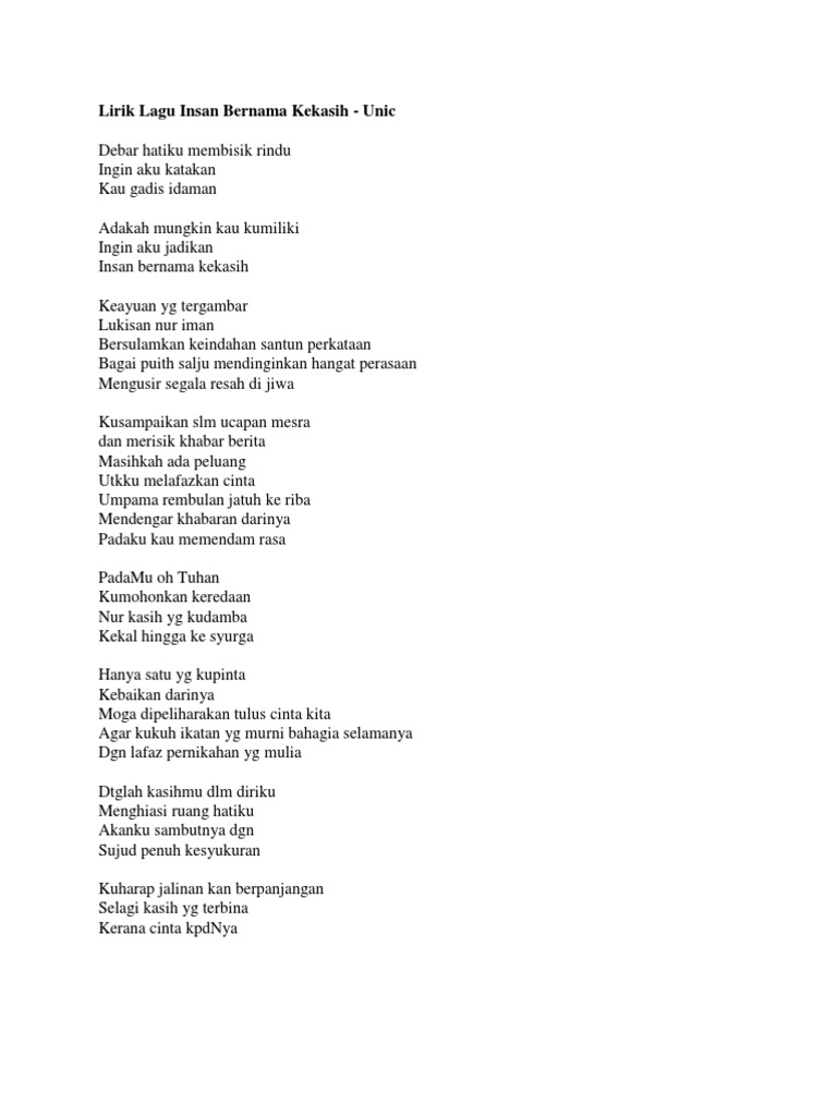 Lirik Unic Insan Bernama Kekasih Pdf